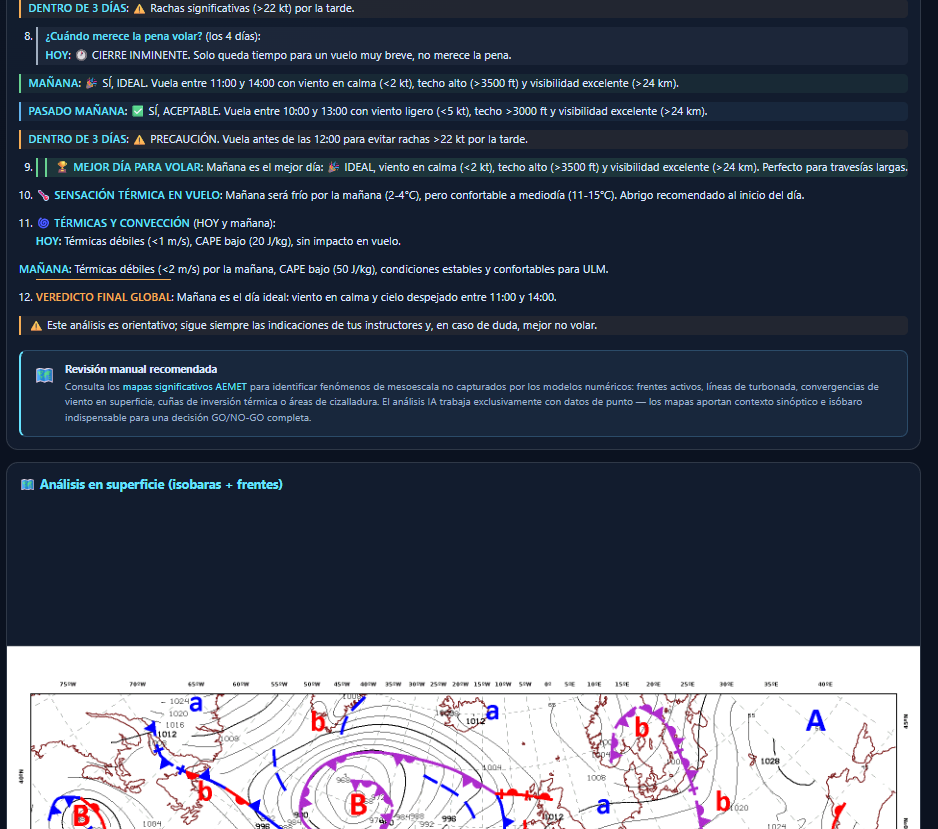 contiene todo lo necesario para planificar el vuelo. Todos los recursos que normalmente consultamos en un solo sitio + un análisis IA.