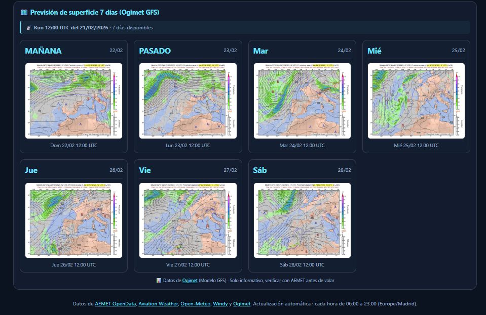 APIs: Open-Meteo, AEMET OpenData, Aviation Weather, Windy